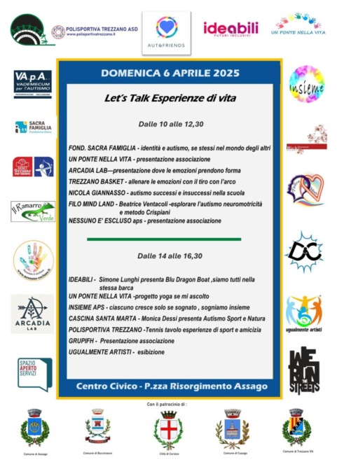 associazioni e realtà del territorio che si dedicano alle persone con disabilità. Con il patrocinio dei Comuni di Assago, Buccinasco, Corsico, Cusago e Trezzano sul Naviglio, l’evento quest’anno si svolgerà al Centro Civico di piazza Risorgimento ad Assago domenica 6 aprile dalle 10 alle 18 con gli stand delle associazioni, dimostrazioni e prove pratiche di sport inclusivo, racconti di esperienze di vita.