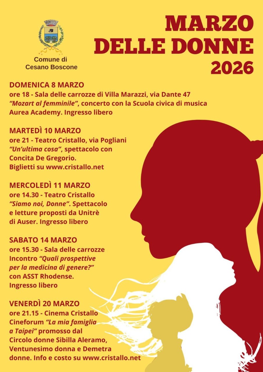 A Cesano Boscone il “Marzo delle Donne” coinvolge diverse associazioni cittadine con un programma che unisce cultura e approfondimento.