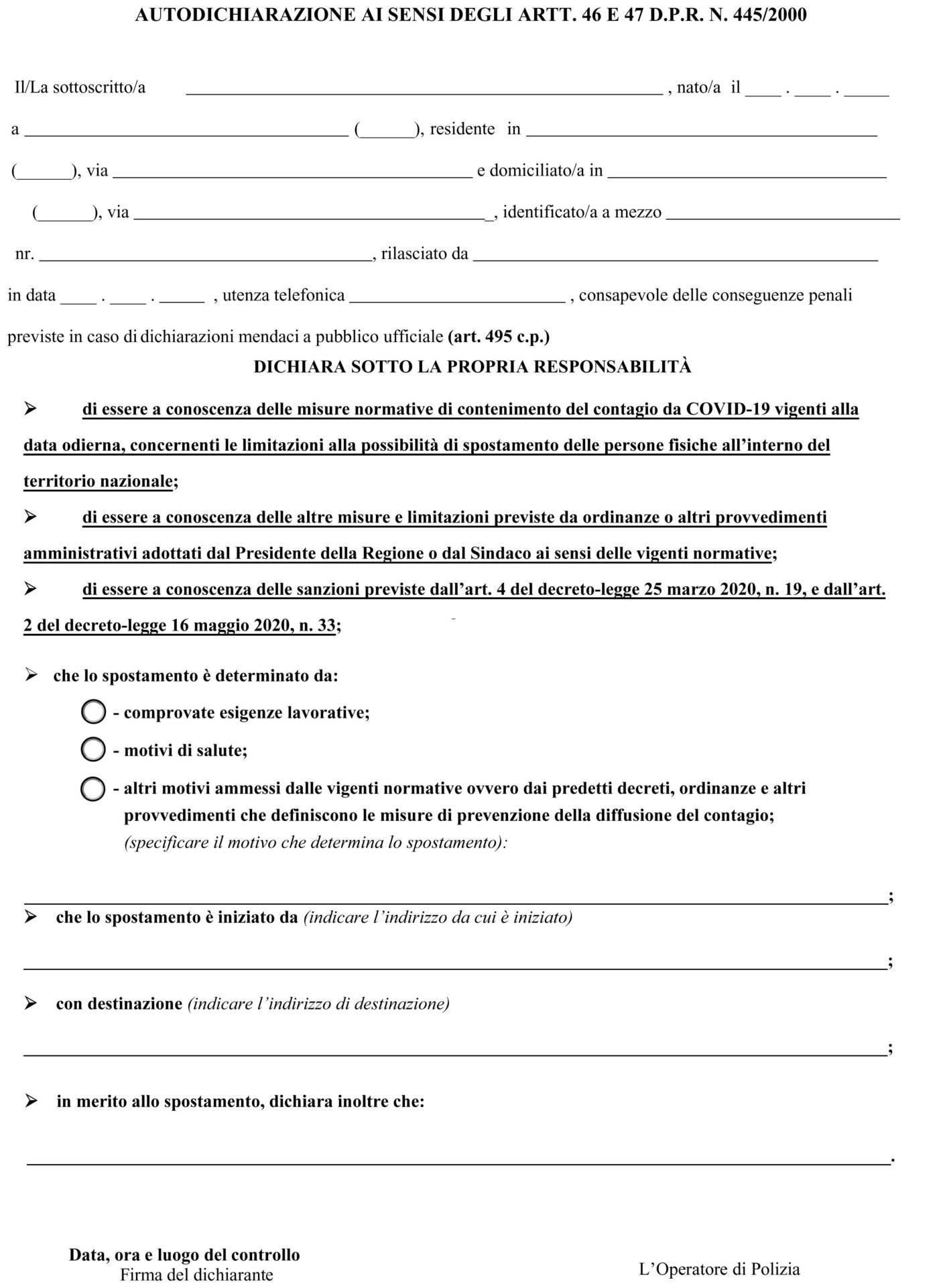 Il modello per l’autocertificazione è stato già introdotto in alcune regioni che in queste settimane hanno adottato lockdown parziale dalla sera alla mattina. Lo stesso in abbinamento anche con il nuovo Dpcm che il premier Conte ha firmato questa notte e che sarà valido da giovedì 5 novembre 2020 fino (almeno) a giovedì 3 dicembre.