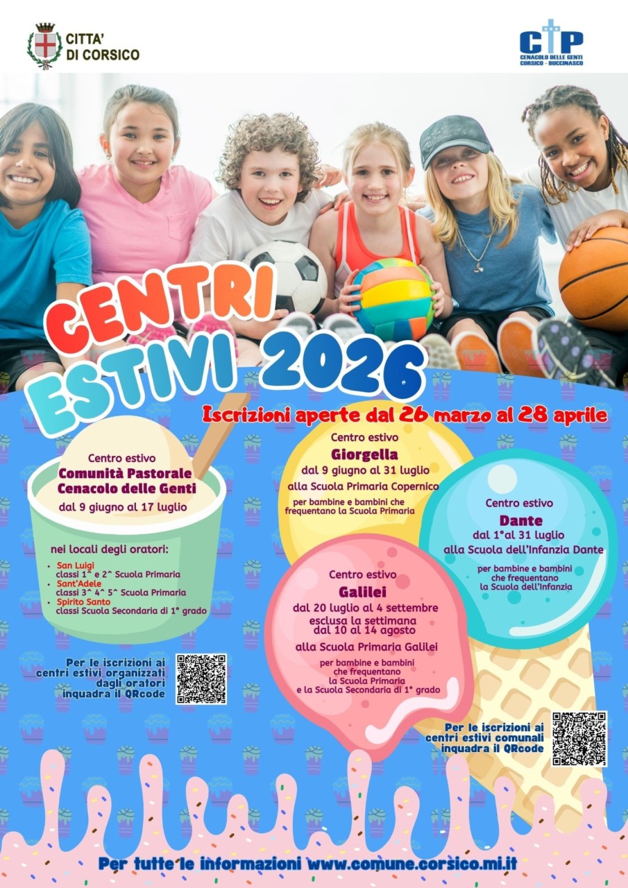 Il Comune di Corsico annuncia l’apertura delle iscrizioni ai Centri Estivi 2026, rivolti a bambini e ragazzi, con un’offerta articolata in diverse sedi e periodi per rispondere alle esigenze delle famiglie.