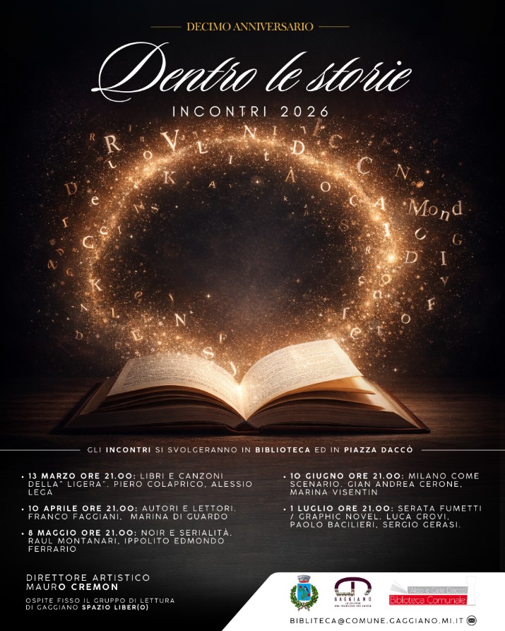 Negli anni la rassegna si è consolidata come un format culturale collaudato, capace di portare nella biblioteca di Gaggiano autori e storie appartenenti a generi diversi: dalla narrativa al noir, dalla musica al racconto illustrato. “Quest’anno abbiamo deciso di invitare autori di grande spessore proprio per celebrare un anniversario così importante”, aggiunge Gualtieri.