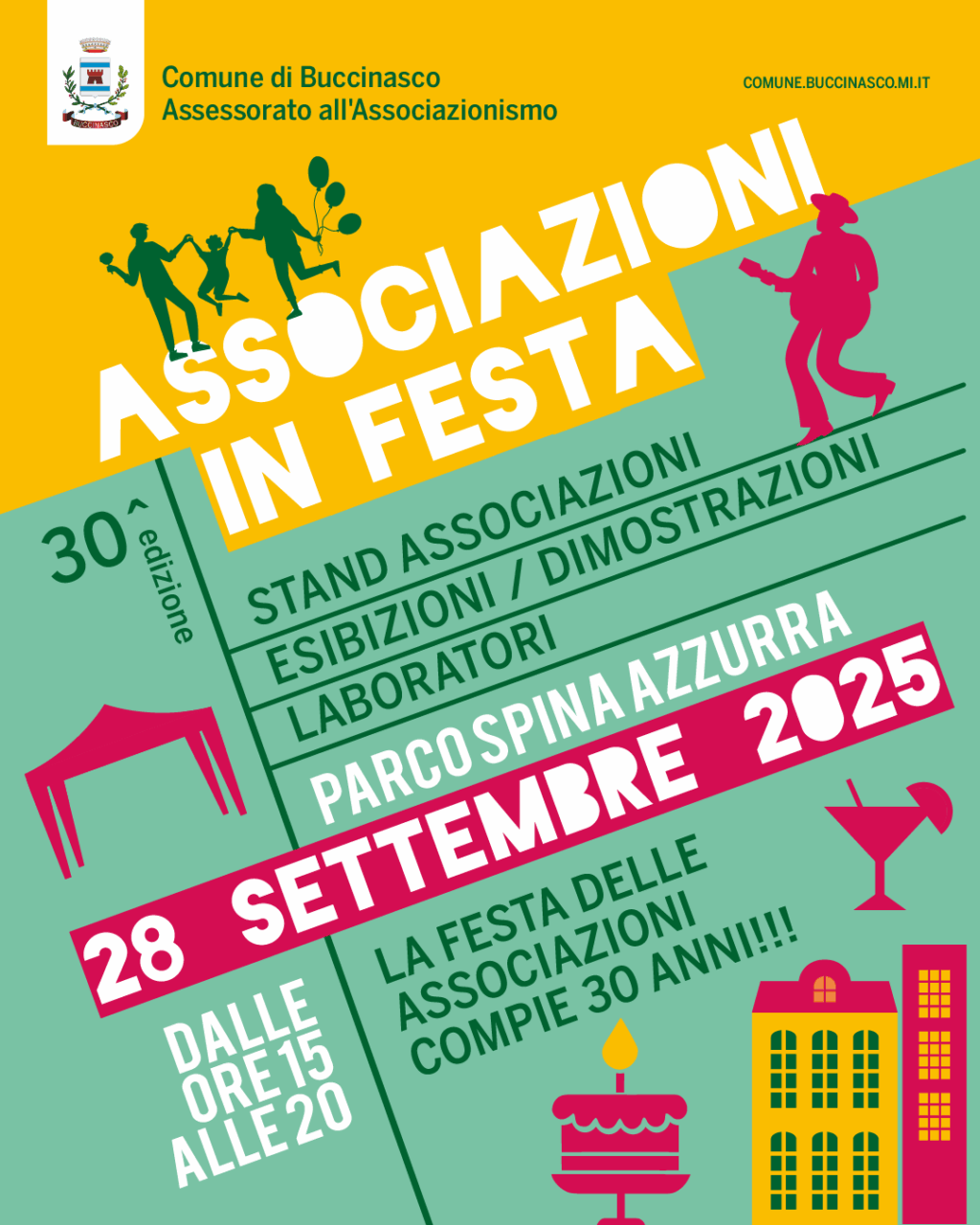 BUCCINASCO – Domenica 28 settembre “Associazioni in Festa” taglia il ragguardevole traguardo numero 30. L’annuale evento con gli stand delle associazioni di Buccinasco dove si presenterano le loro attività con esibizioni, dimostrazioni, laboratori e per concludere l’aperitivo finale