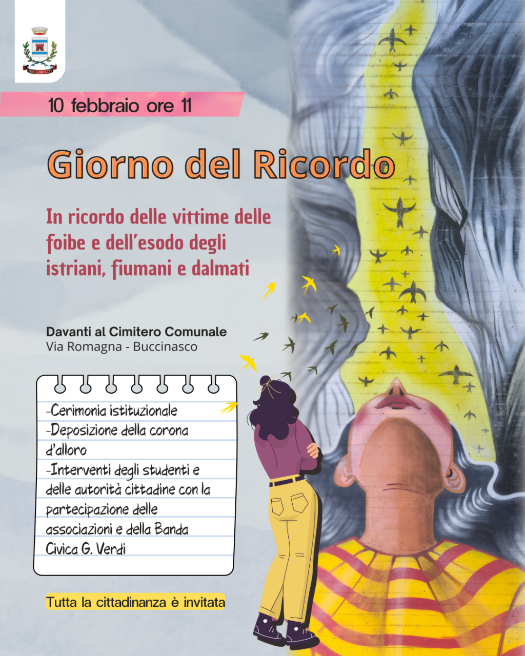 Tutta la cittadinanza e le associazioni del territorio sono invitate alla cerimonia martedì 10 febbraio alle ore 11 davanti al Cimitero comunale di via Romagna. Sarà presente anche la Banda Civica G. Verdi.