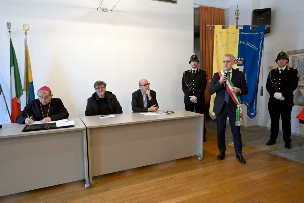 Ad aprire i lavori è stato il sindaco di Cesano Boscone, Marco Pozza, che ha sottolineato il valore simbolico dell’incontro in un luogo cardine della vita istituzionale cittadina. Pozza ha richiamato le difficoltà dei territori di confine, spesso chiamati a farsi carico delle fragilità espulse dalla grande città, evidenziando la necessità di un dialogo costante tra istituzioni e Chiesa per interpretare la cura della “casa comune” come responsabilità etica verso la dignità delle persone. Il primo cittadino ha inoltre richiamato l’impegno delle amministrazioni locali nell’adattamento ai cambiamenti climatici, per garantire un futuro sostenibile alle nuove generazioni.