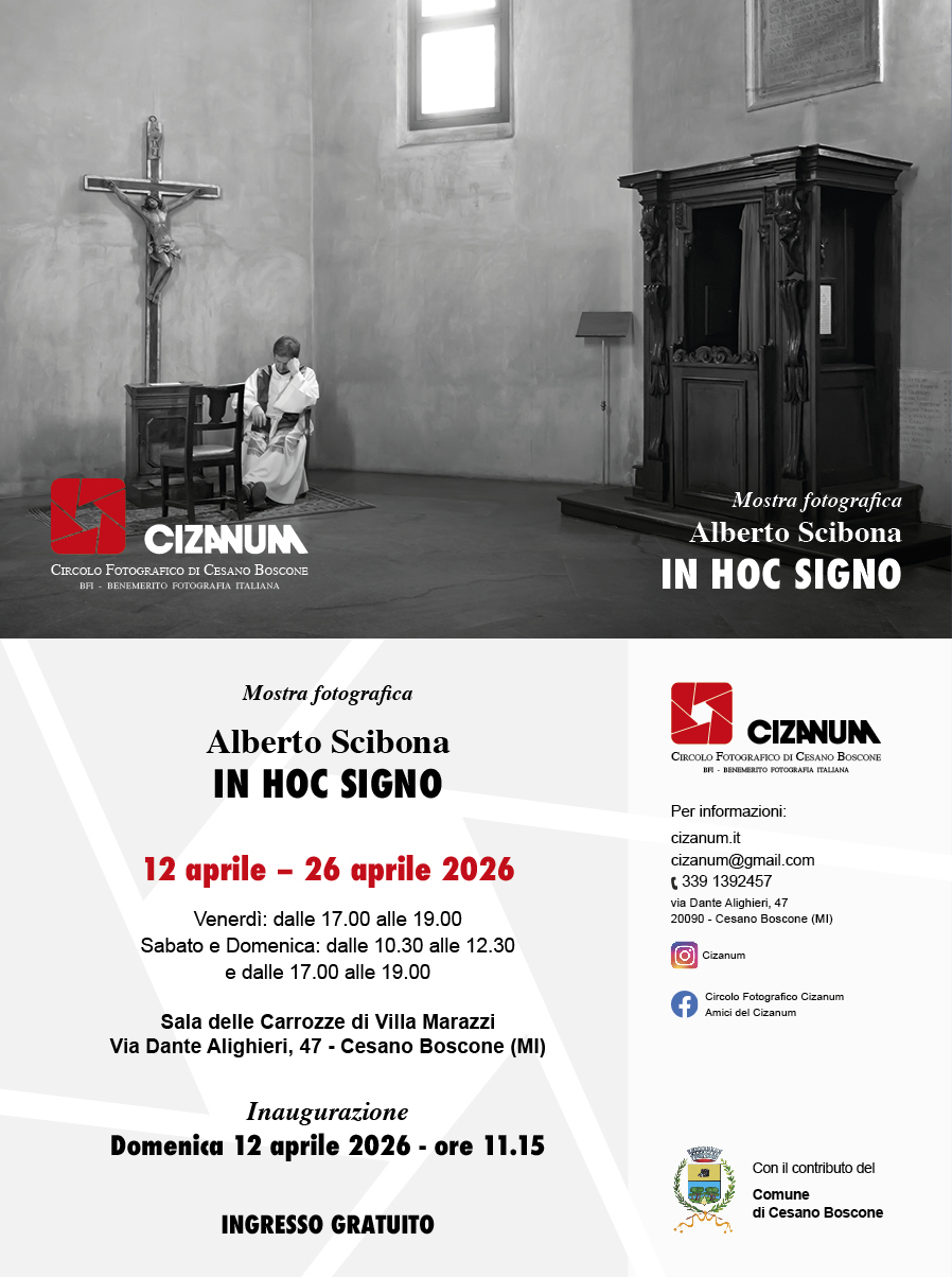 CESANO BOSCONE – Il Circolo Fotografico Cizanum propone la mostra “In hoc signo. Una lunga cavalcata nella sconfinata prEteria” di Alberto Scibona, allestita presso la Sala delle Carrozze di Villa Marazzi, in via Dante 47.
