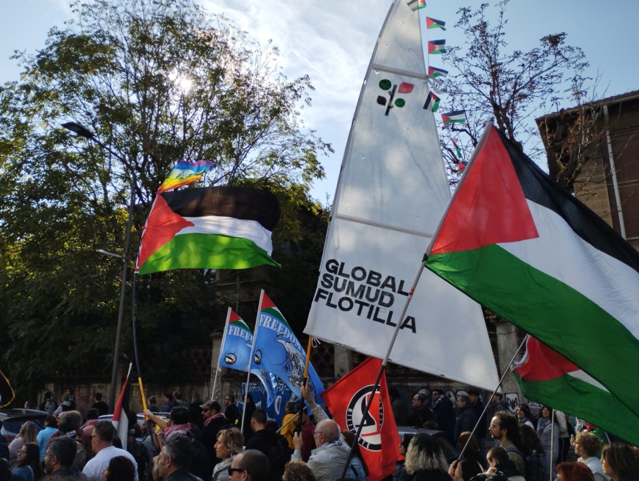 Il corteo prosegue senza tensioni: slogan e bandiere per Gaza e Flotilla