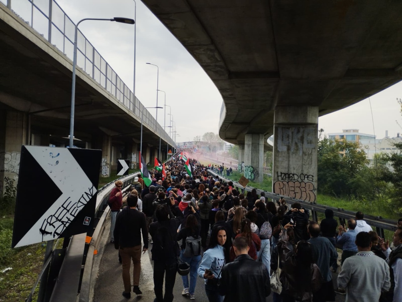 Dopo aver imboccato la Tangenziale Est all’altezza dell’uscita di Lambrate, i manifestanti continuano ad occupare l’arteria. Gruppi di antagonisti si fronteggiano a distanza con le Forze dell’Ordine e hanno lanciato sassi, petardi e bottiglie contro gli agenti.