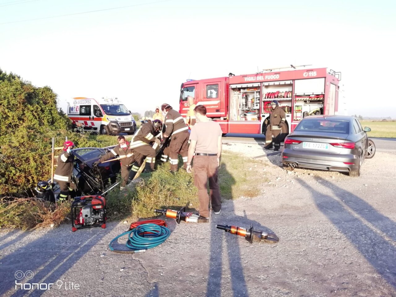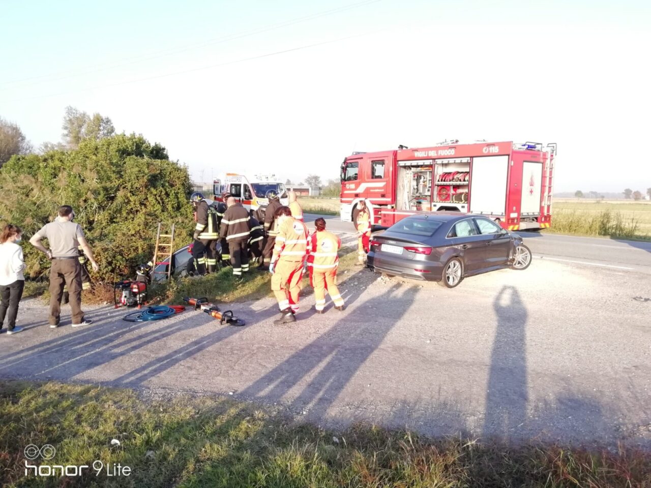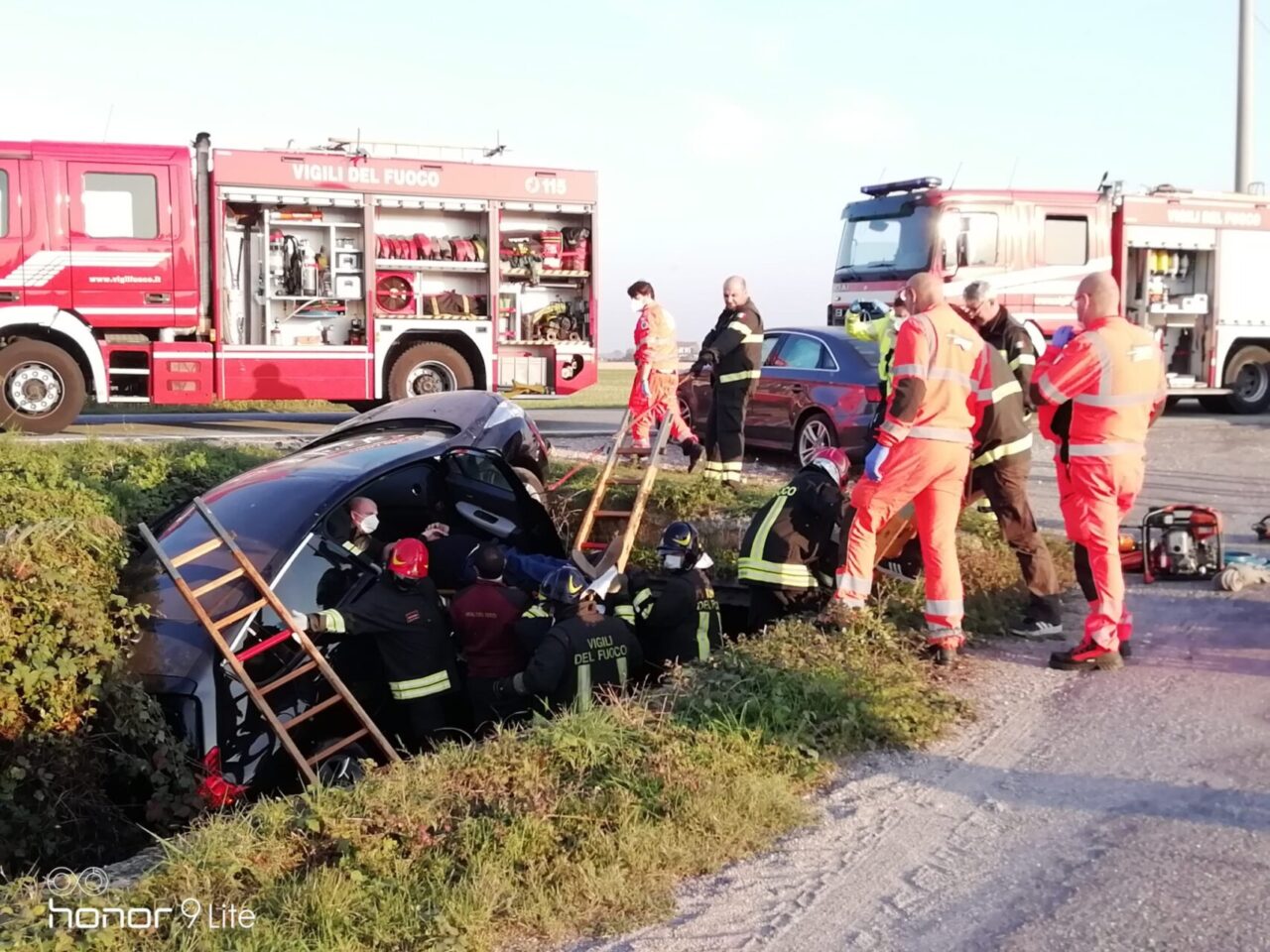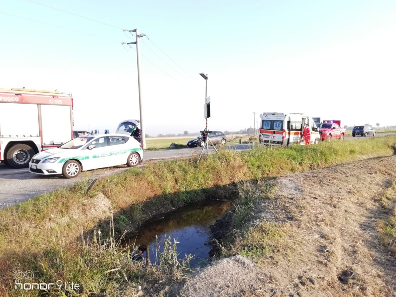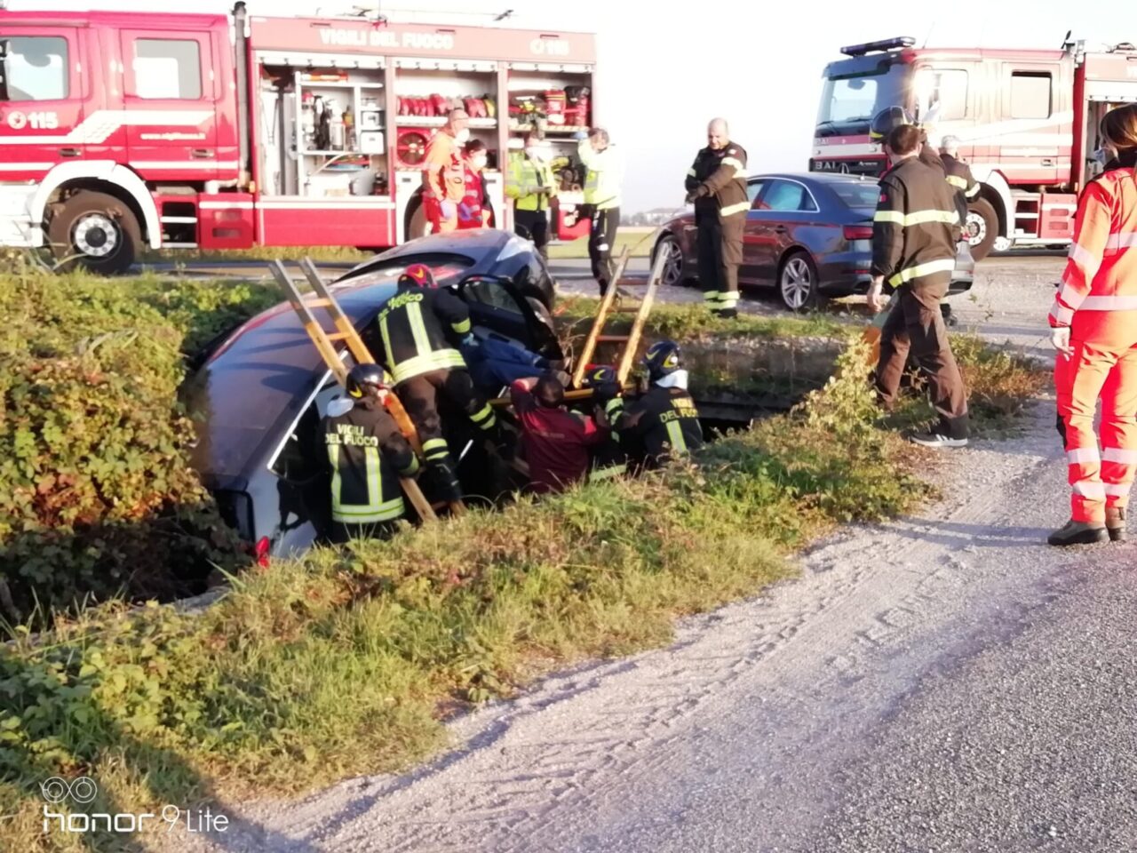Auto finisce nel fossato dopo incidente: 73enne portato via in elisoccorso