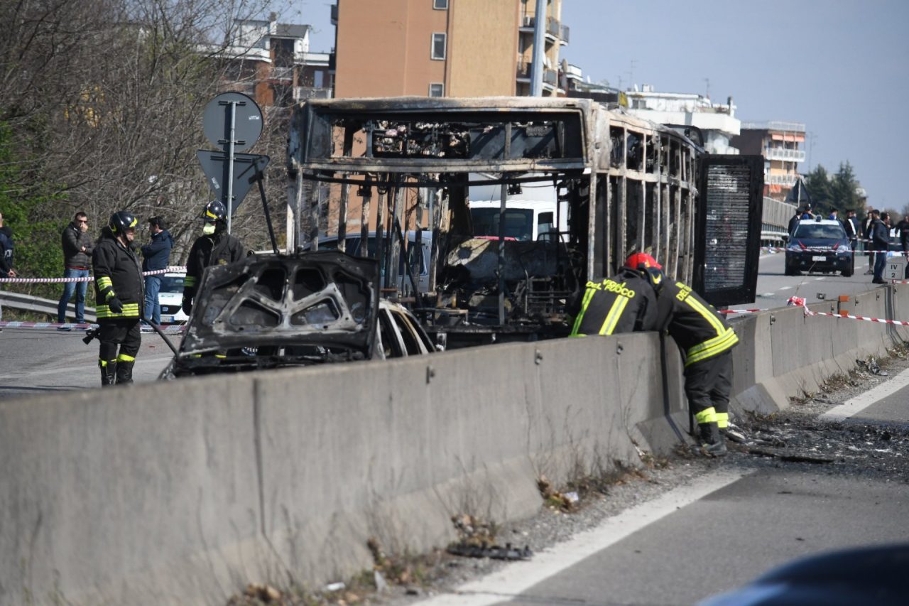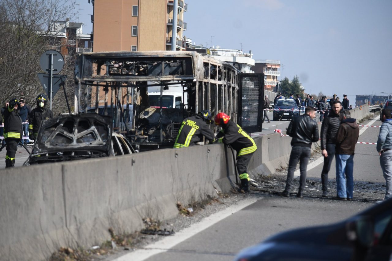 Bus incendiato dopo essere stato sequestrato, ecco cos’è successo e come le Forze dell’ordine hanno potuto salvare i ragazzini, che hanno vissuto mezz’ora di terrore, a Peschiera Borromeo.