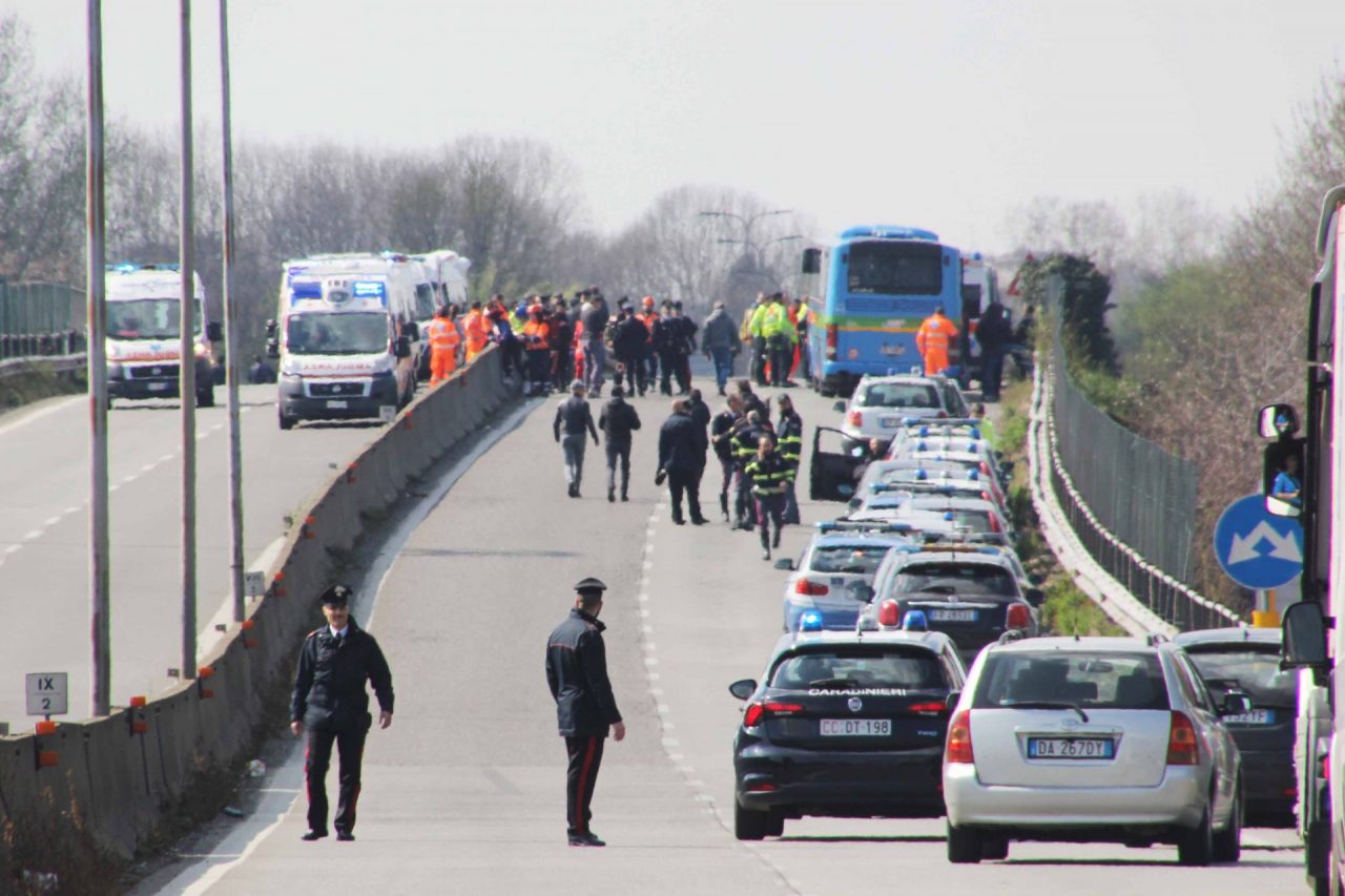 Una cinquantina di ragazzini di due classi di seconda media di Crema, accompagnati da due docenti, che hanno vissuto mezz’ora di terrore. Si trovavano in zona a seguito di un progetto sportivo e mai avrebbero immaginato cosa sarebbe successo dopo essere saliti sul mezzo per venire trasferiti.