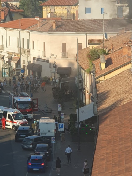 Un vasto incendio devasta la cucina del ristorante cinese a Corsico in piazza del Ponte: evacuati gli stabili vicini (nostra redazione inclusa).