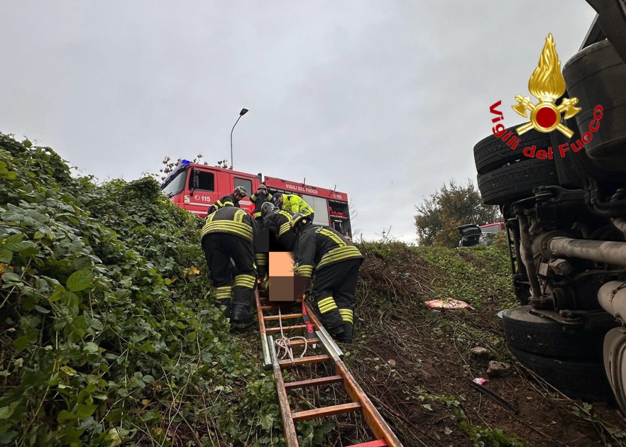 I soccorsi sono stati immediati: le squadre del Distaccamento di via Sardegna, supportate dal personale Unimog e Gru, hanno estratto l’autista dall’abitacolo e riportato il veicolo sul bordo della carreggiata.